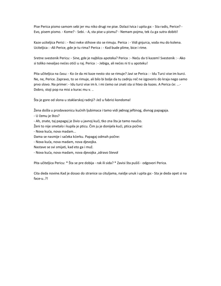 Uciteljica Je Pitala Pericu Da Joj Kaze Nesto Sto Se Rimuje Ali