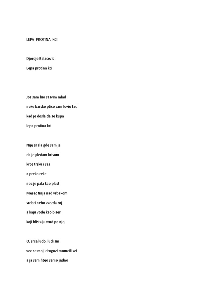 Balasevic Tekstovi Lepa Protina Kci Tekst Facebook