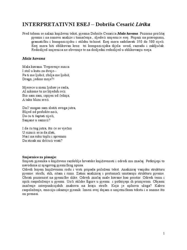 Interpretativni Esej Dobrisa Cesaric