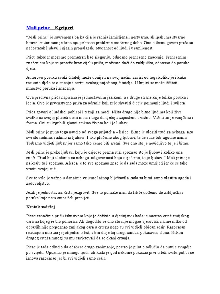 Mali Princ Seminarski Rad Decija Knjizevnost 2 Knjizevnost Docsity