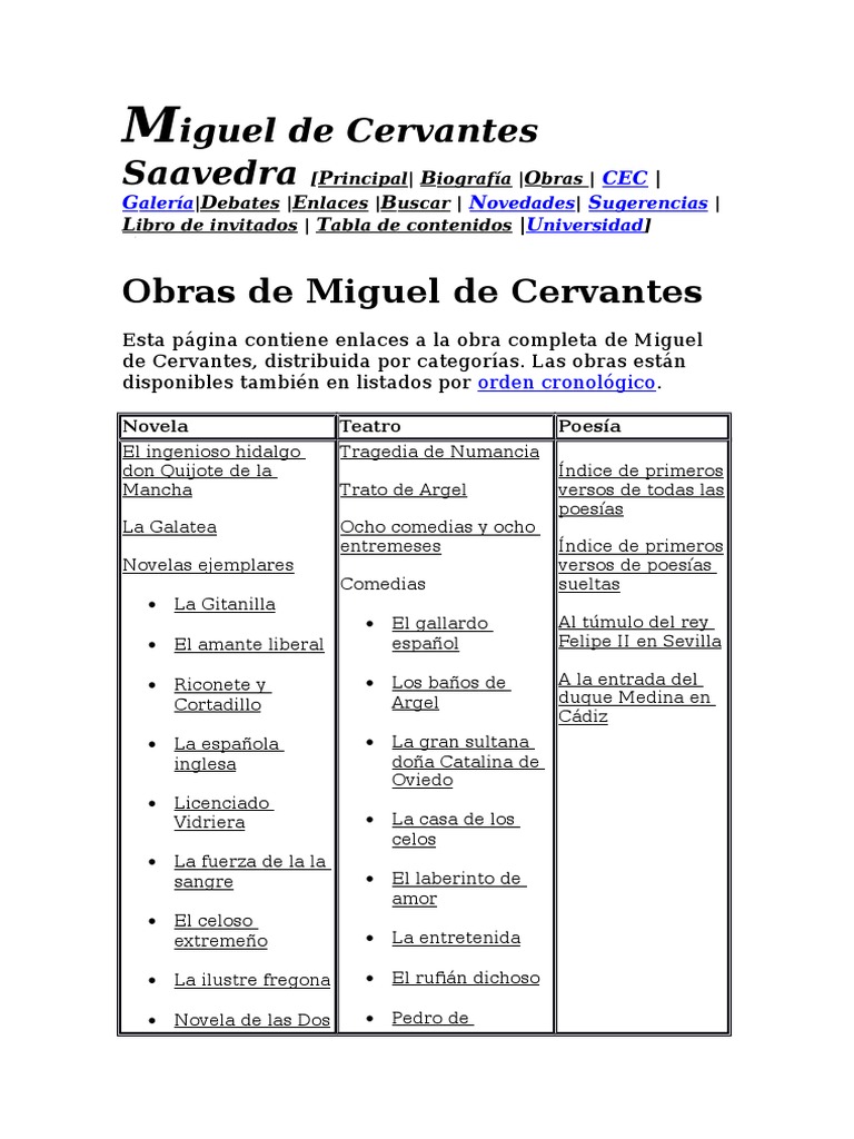 Miguel De Cervantes Saavedra Obras De Miguel De Cervantes Saavedra