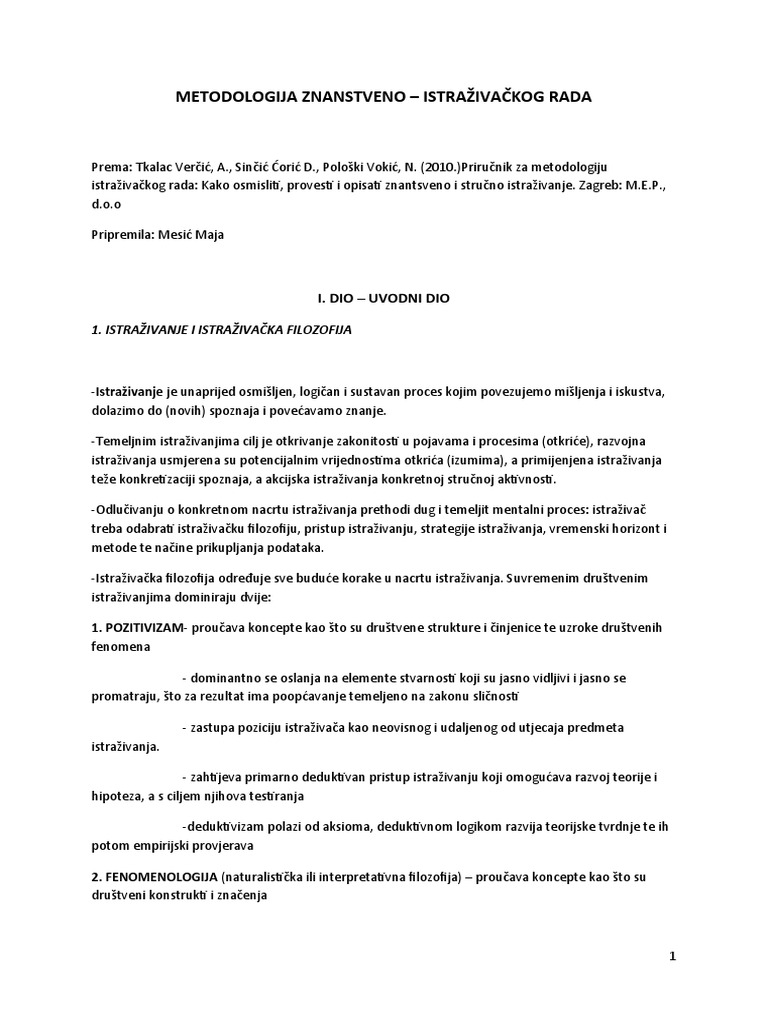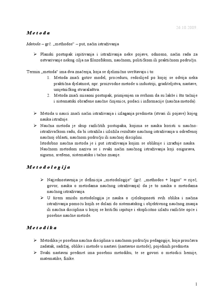Metode I Pristupi Pisanju Naucnog Rada Metode Istrazivanja U