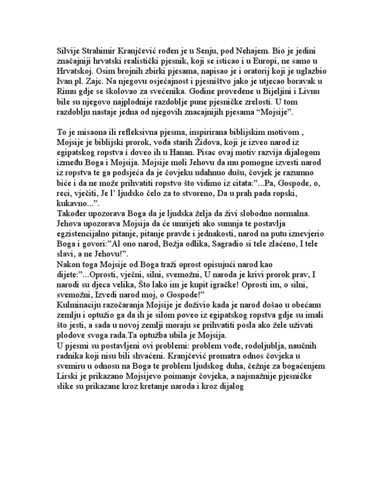 Silvije Strahimir Kranjcevic Mojsije Prepricano Lektira Lektire Me
