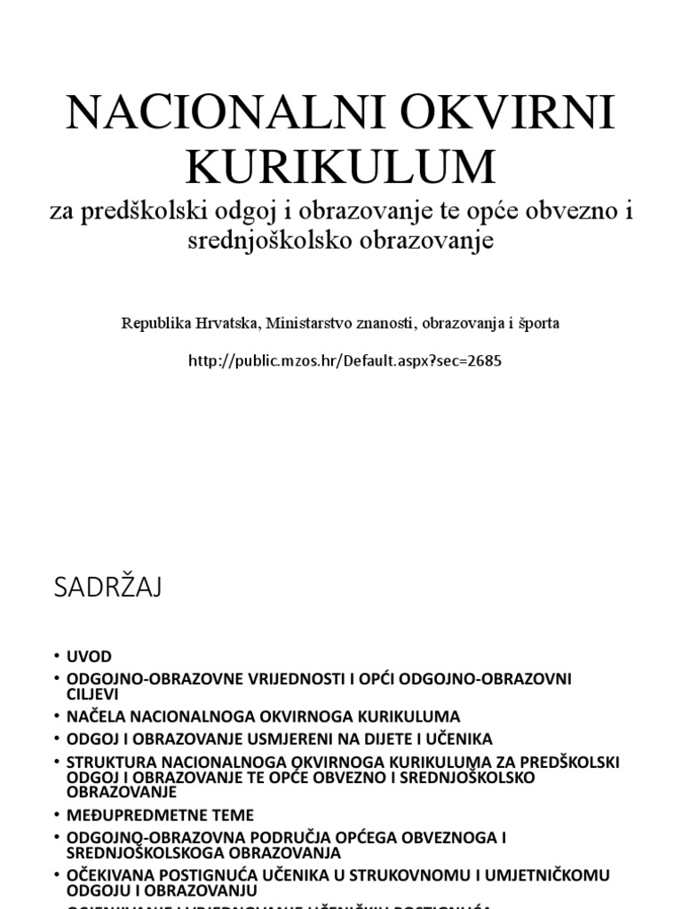 Nacionalni Okvirni Kurikulum Pdf Document