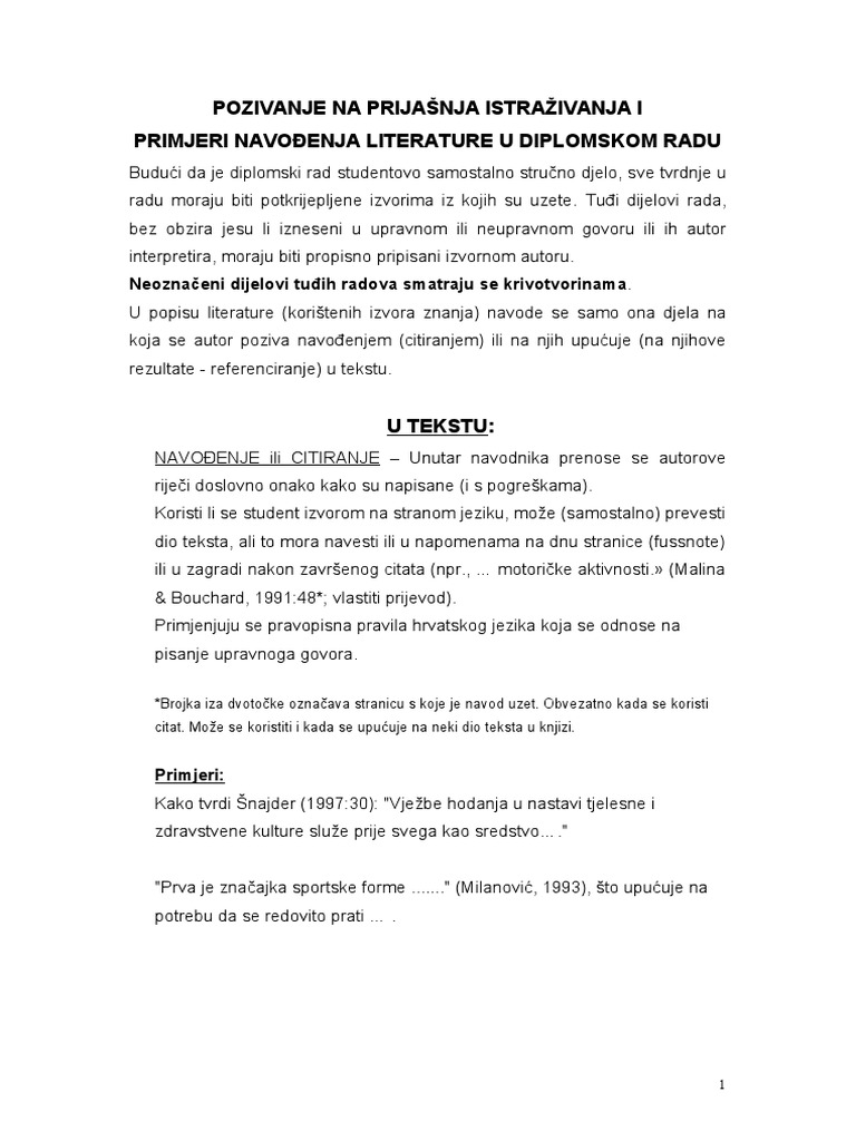 Pozivanje Na Prijasnja Istrazivanja I Primjeri Navođenja Literature U Diplomskom Radu