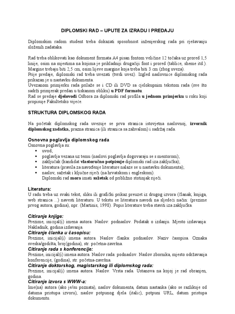 Diplomski Rad Upute Za Izradu I Predaju Citiranje Knjige
