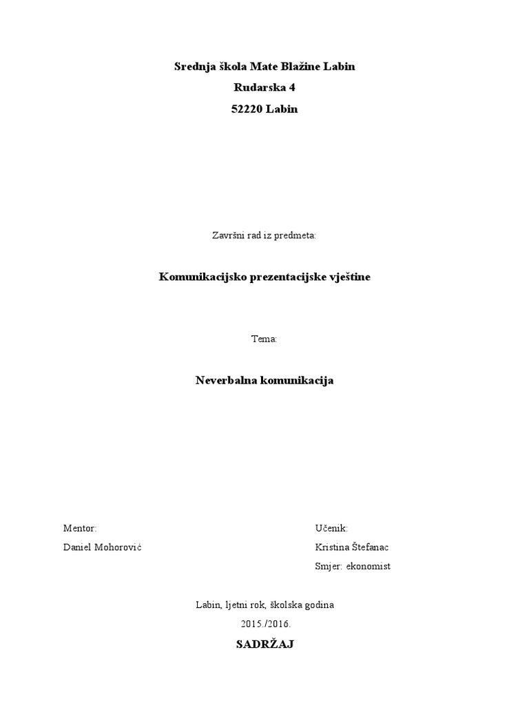 Neverbalna Komunikacija Zavrsni Rad
