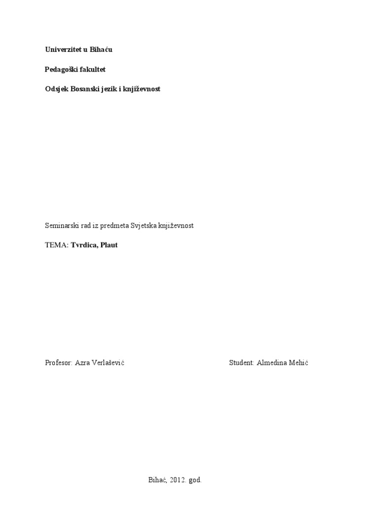 Skrtac Plaut Analiza Djela Lektire Hr