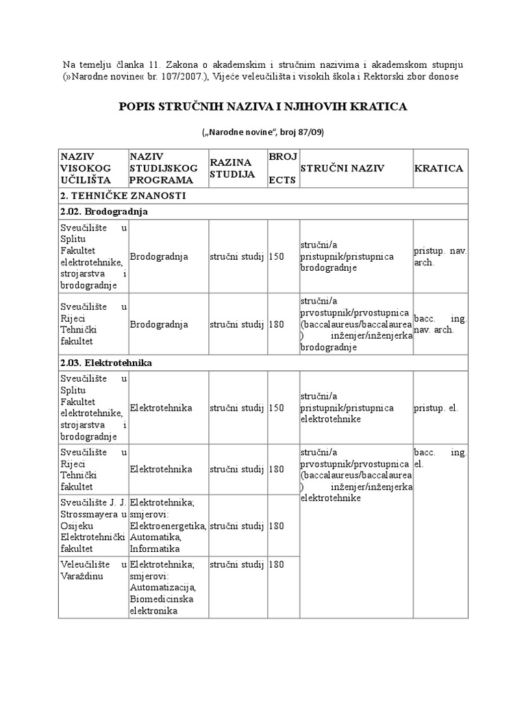 Pravilnik O Odgovarajucim Akademskim Nazivima I Izdavanju Potvrde