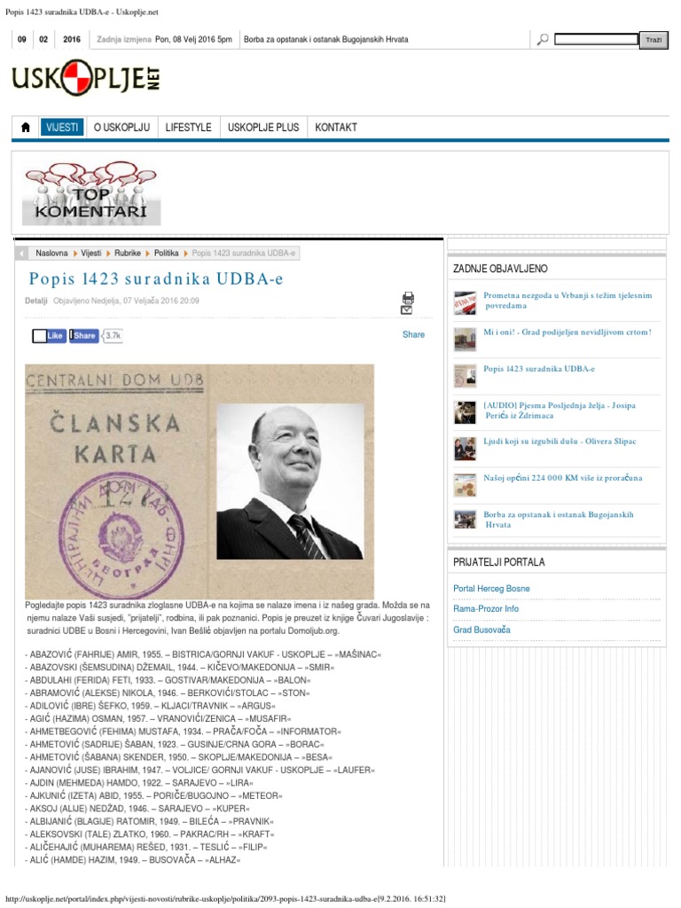 Popis 1423 Suradnika Udba E Hazud Hr