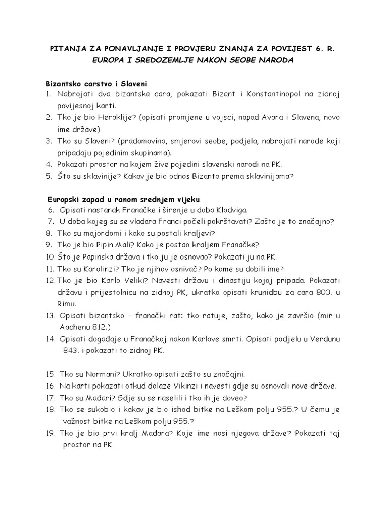 Povijest učimo povijest kroz igru. Kviz znanja 6. Razred hrvatske knezevine 9. Razred europa i sredozemlje nakon seobe naroda.