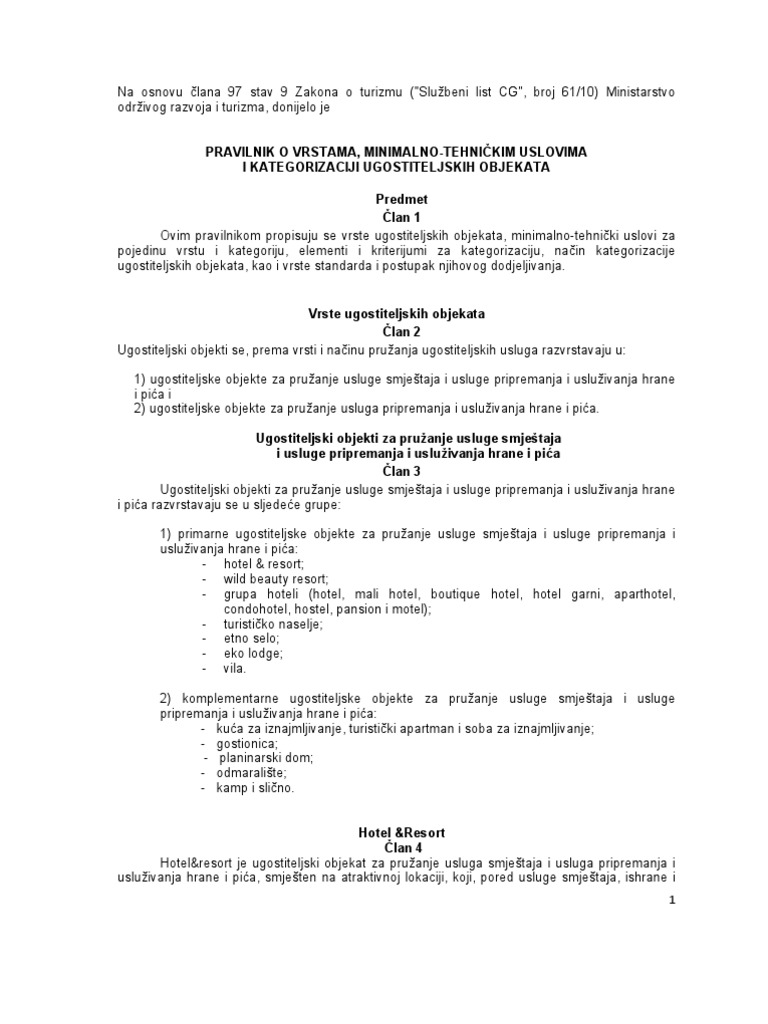 01 Pravilnik O Klasifikaciji Minimalnim Uslovima I Kategorizaciji