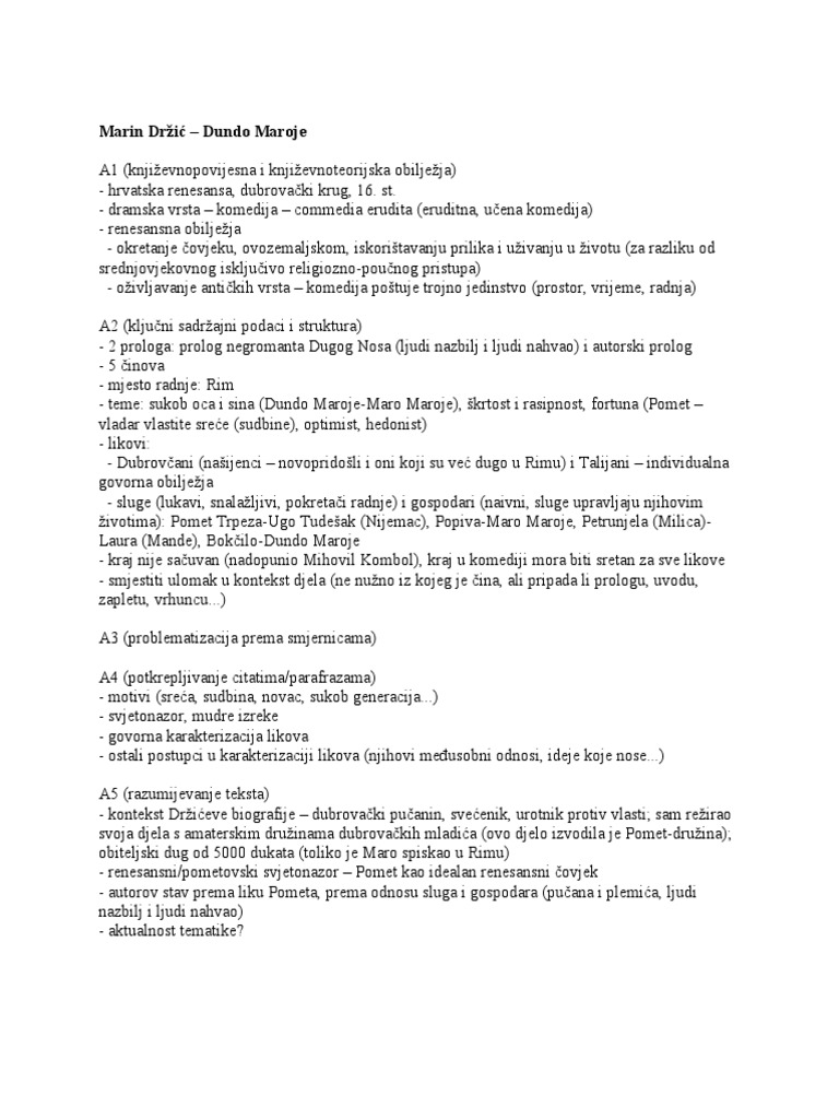 Kratak Pregled Najvaznijih Odrednica Djela Za Esej