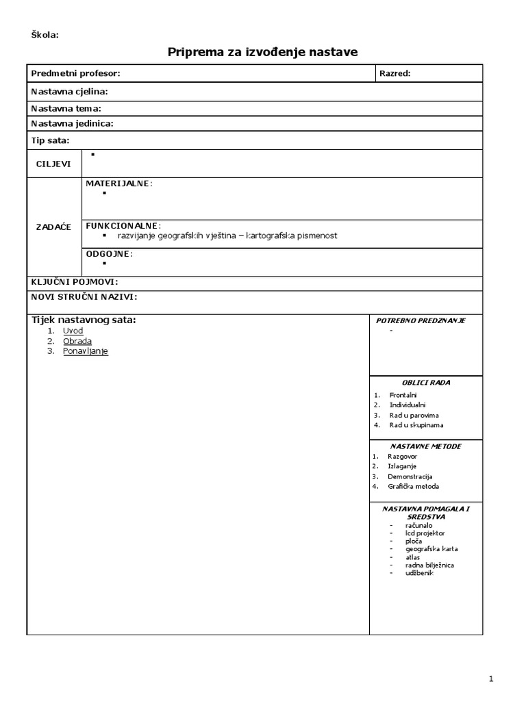 Pisana Priprema Za Nastavni Sat