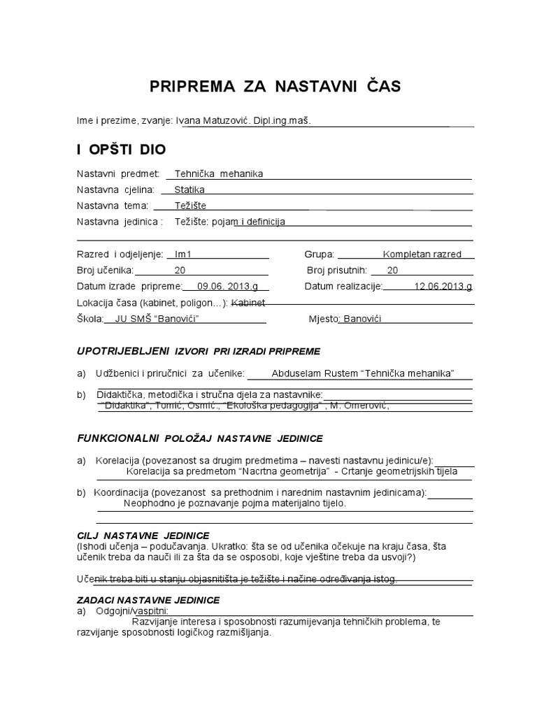 Priprema Za Nastavni Sat