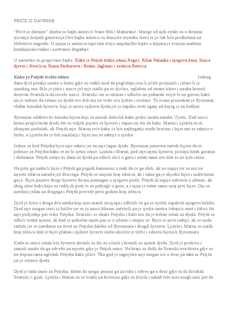 Prepricana Lektira Price Iz Davnine Ivana Brlic Macuranic