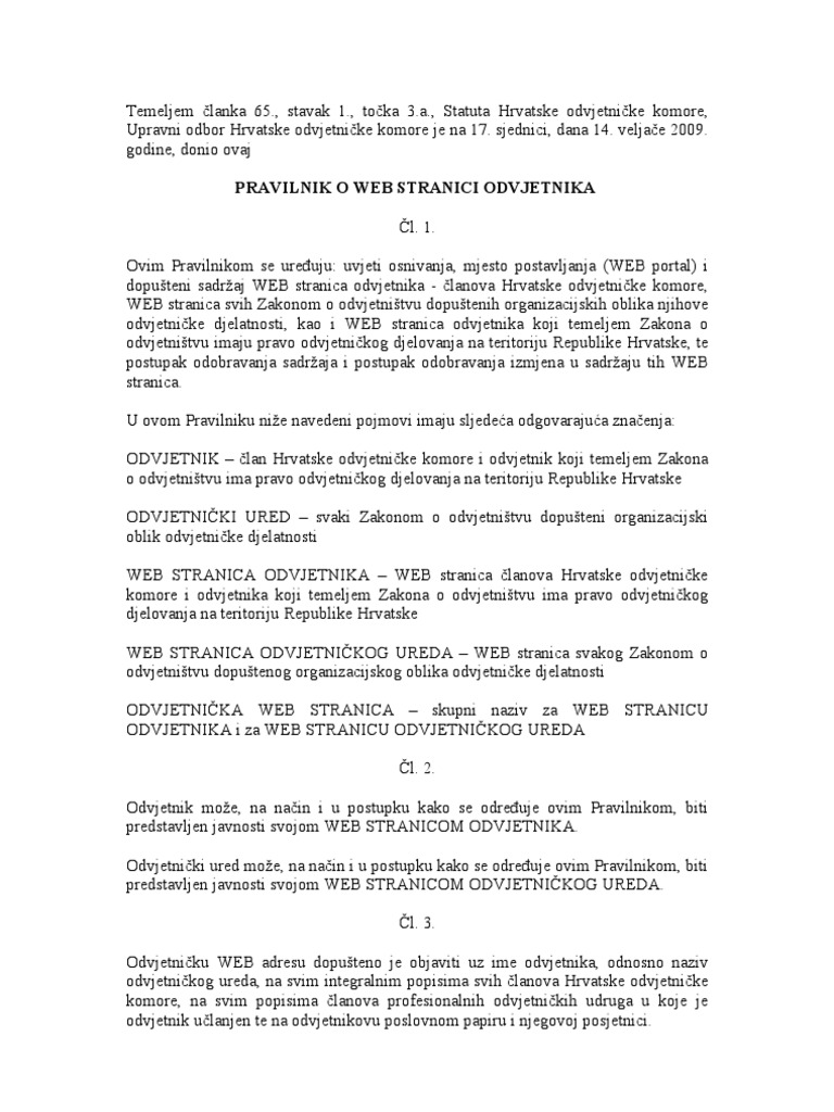 Pravilnik O Web Stranici Odvjetnika