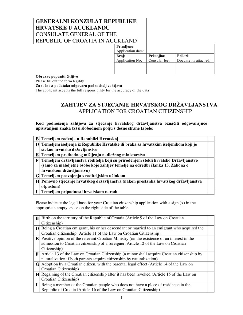 Application For Croatian Citizenship Naturalization Surname