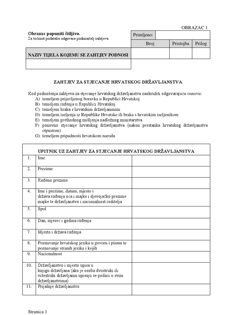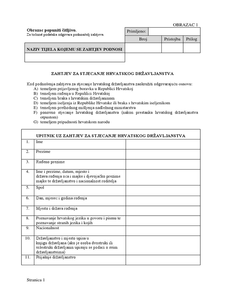 Zahtjev Za Stjecanje Hrvatskog Dra Avljanstva