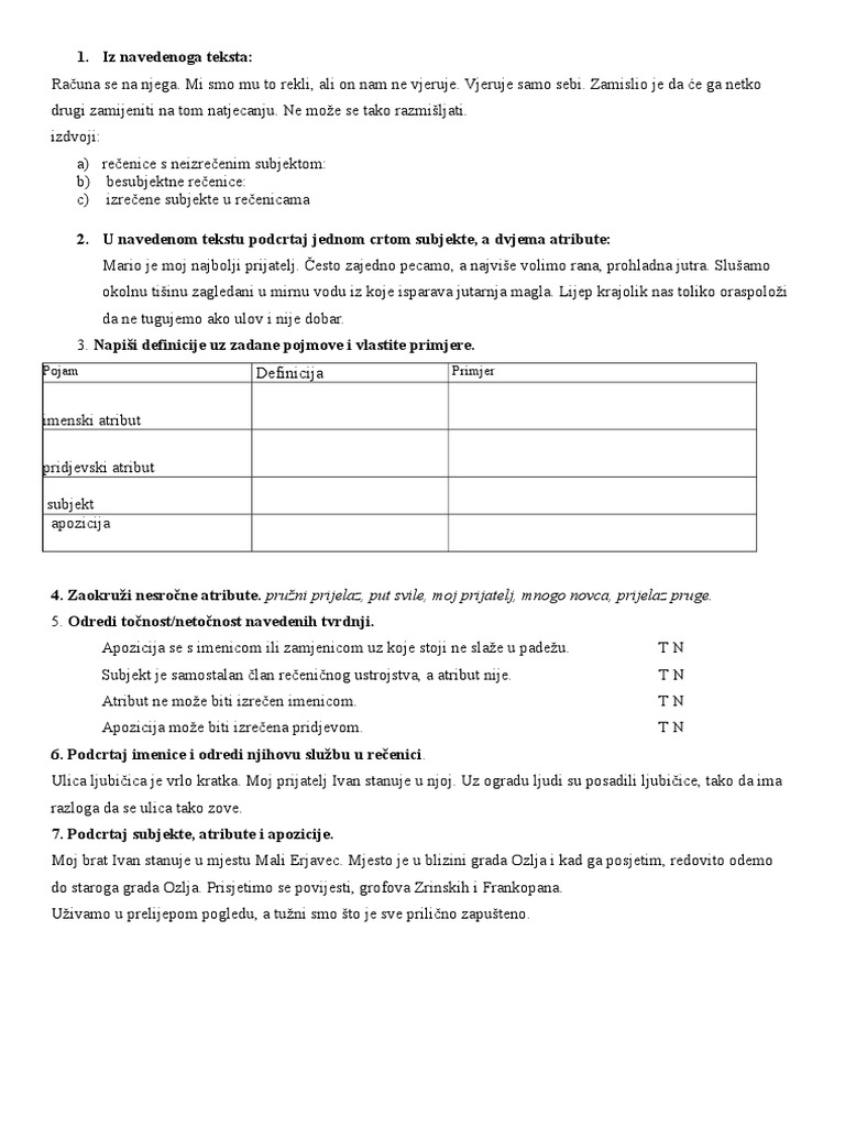Nastavni Listic Subjekt At Ap