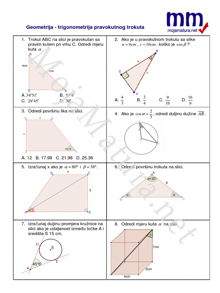 Trigonometrija Pravokutnog Trokuta Zbirka Potpuno Rijesenih