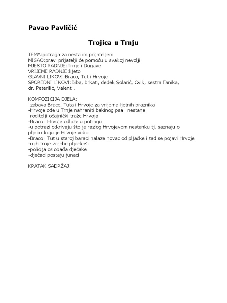 Prepricana Lektira Trojica U Trnju Pavao Pavlicic