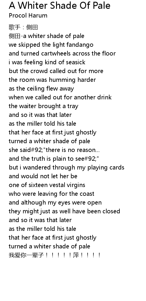 Procol Harum A Whiter Shade Of Pale Lyrics Favorite Lyrics Procol Harum Lyrics