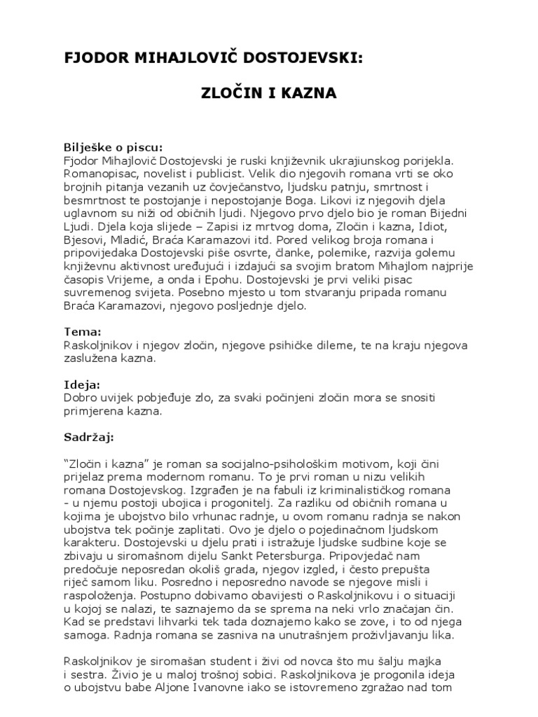 Zlocin I Kazna Fjodor Mihajlovic Dostojevski Lektire Sjedi 5